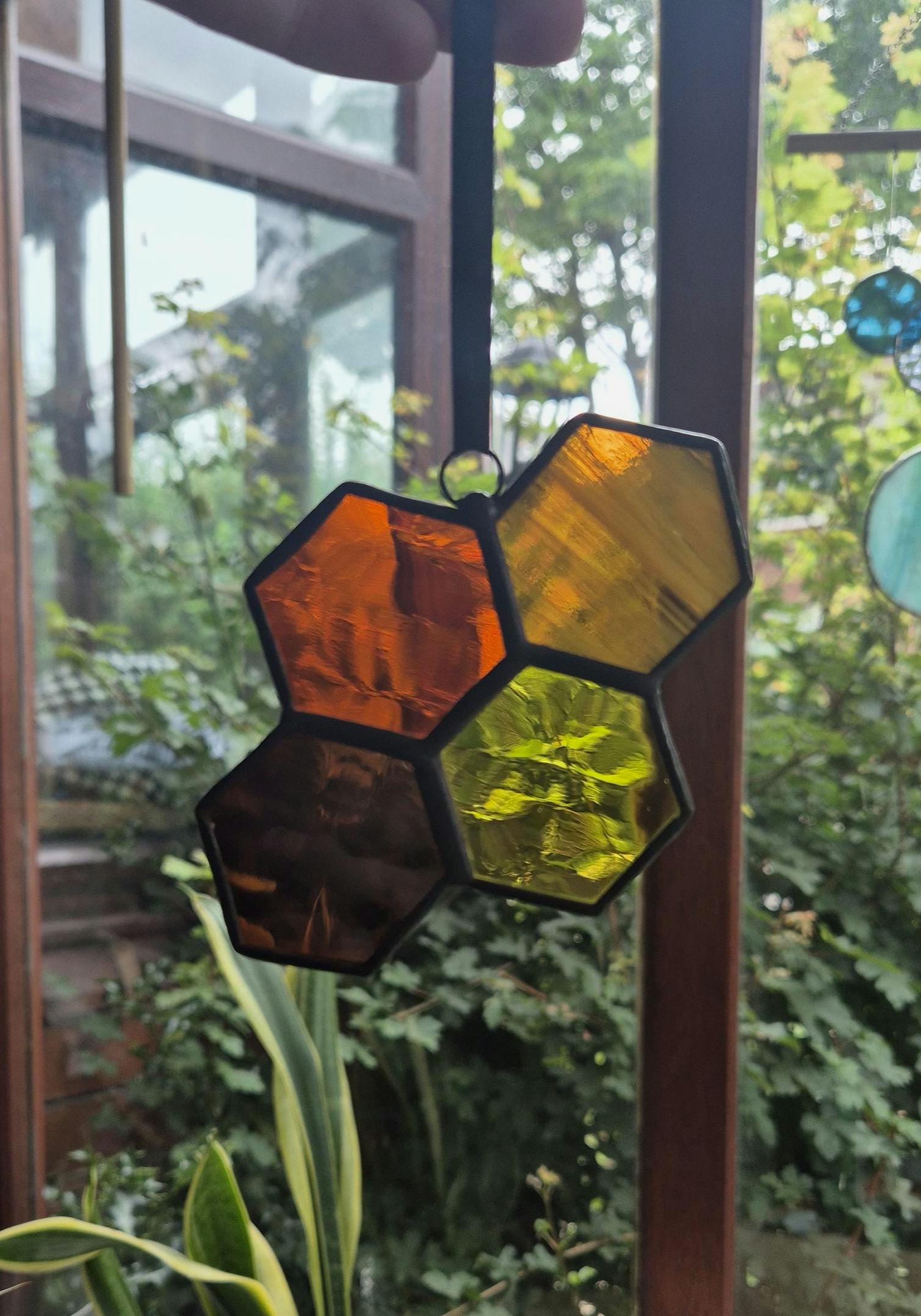 Honeycomb Orange & Yellow Suncatcher Ornament Handmade, Stained Glass Hanging Piece