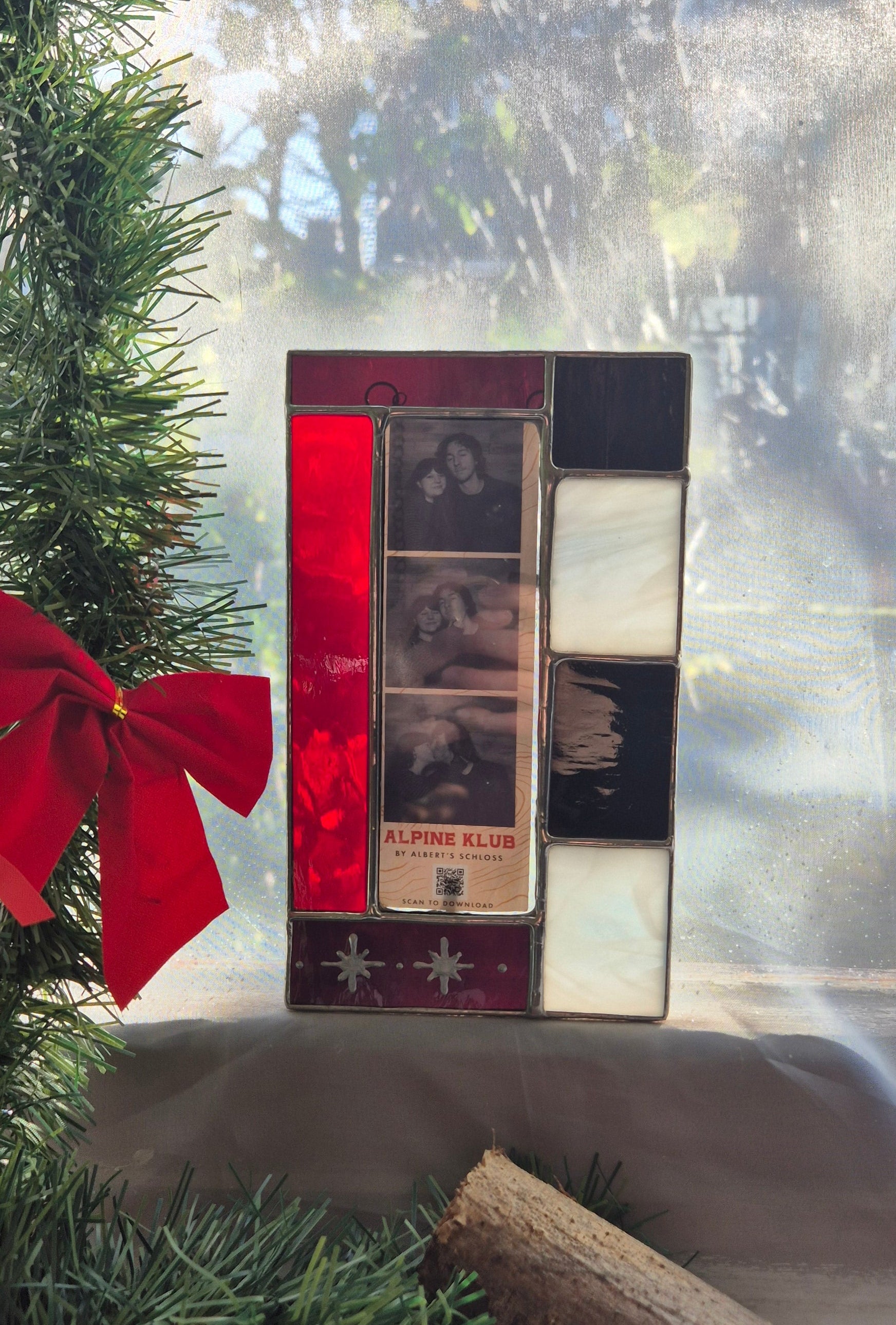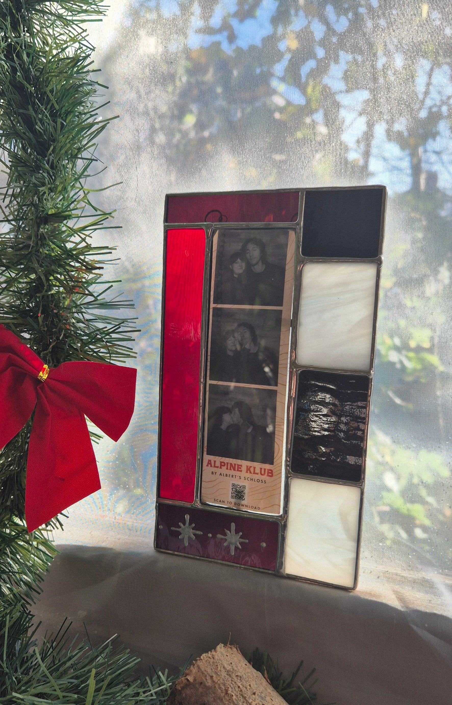The clear glass photo display section measures 2x6 inches in line with most standard photobooth photo sizes.