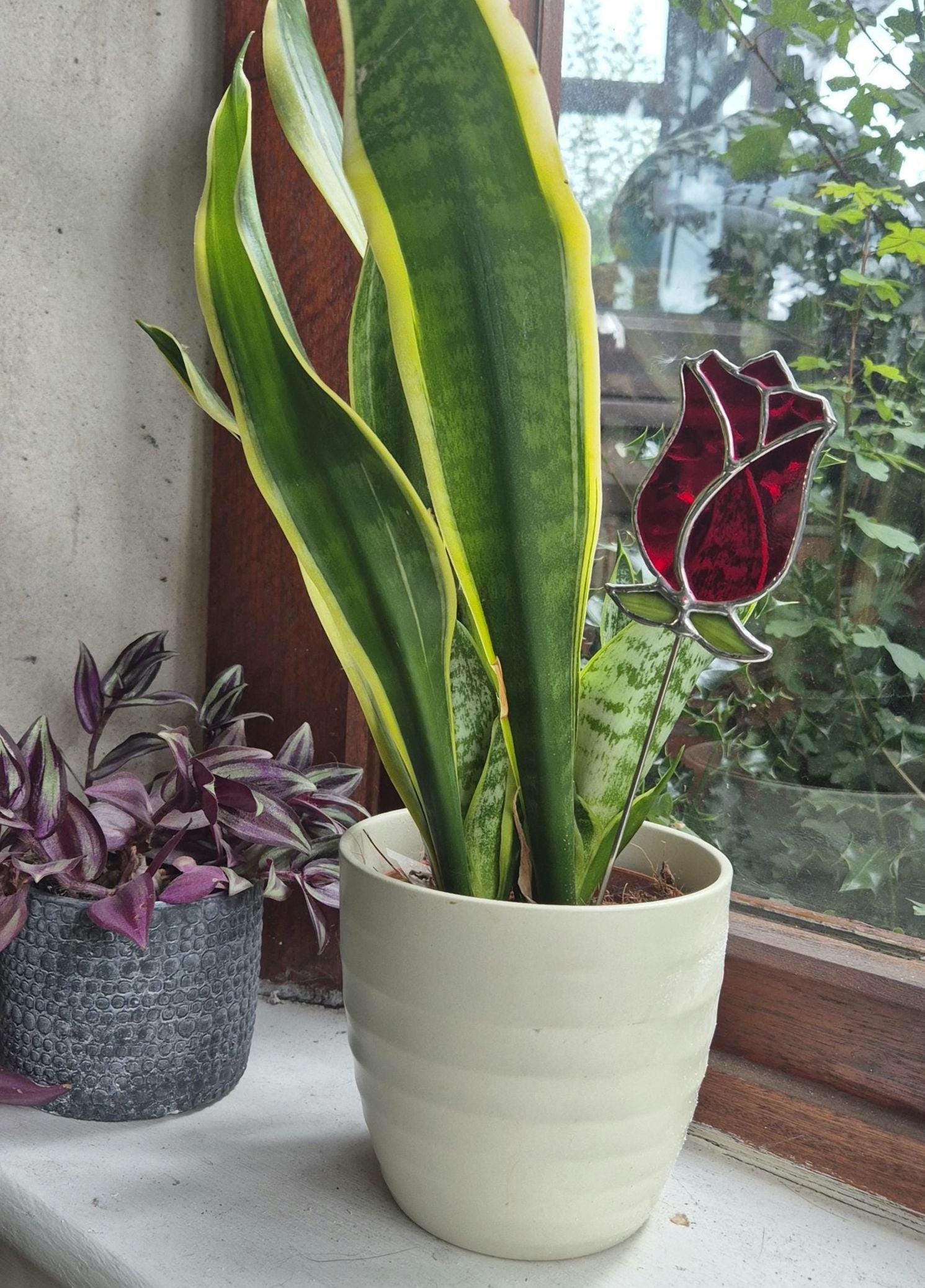 Single Stained Glass Red Rose Suncatcher Plant Stake